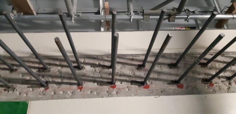 電磁波探査で配筋位置を確認し高精度に削孔。コア抜きからアンカー施工まで一貫し、タイムロスと事故リスクを低減します。